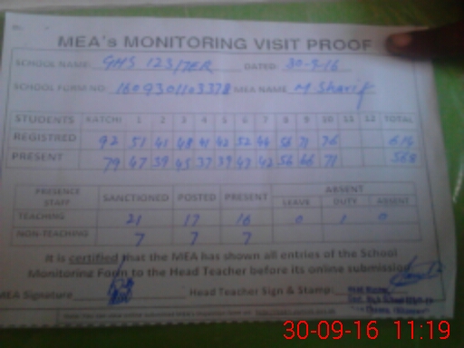 | Attendance Register | Head Teacher | MEA with School | Visit Proof |