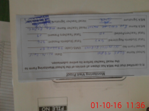 | Attendance Register | Head Teacher | MEA with School | Visit Proof |