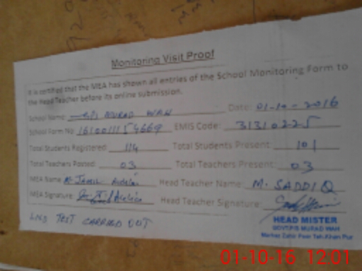 | EMIS Code: 31310225 | Name of School: GPS MURAD WAH PO KOTLA PATHAN | |||