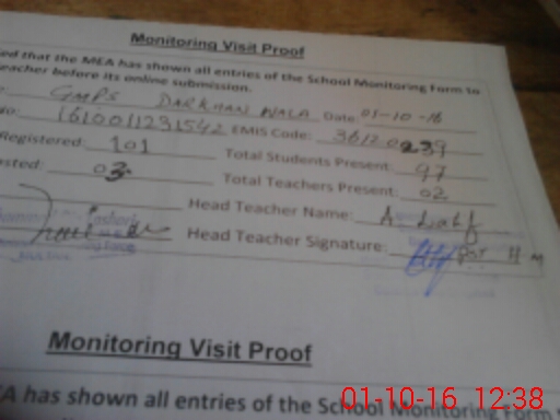 | EMIS Code: 36120239 | Name of School: GMPS DARKHAN WALA | |||