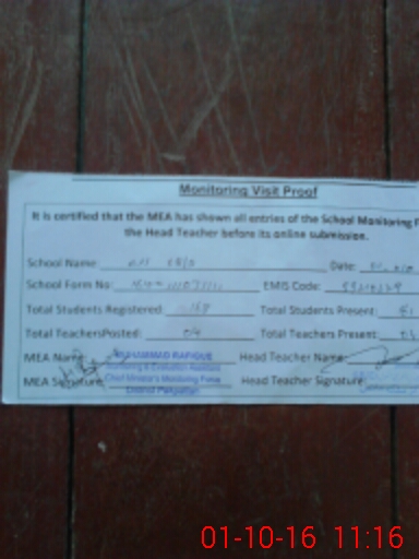 | Certified that this School was Inspected by the Undersigned MEA/DMO Today and the Information Stated Above is as Per Record. | |||||
