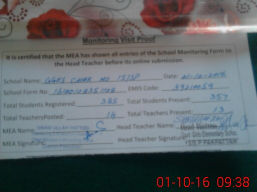 | EMIS Code: 39210059 | Name of School: GGES 15/SP | |||