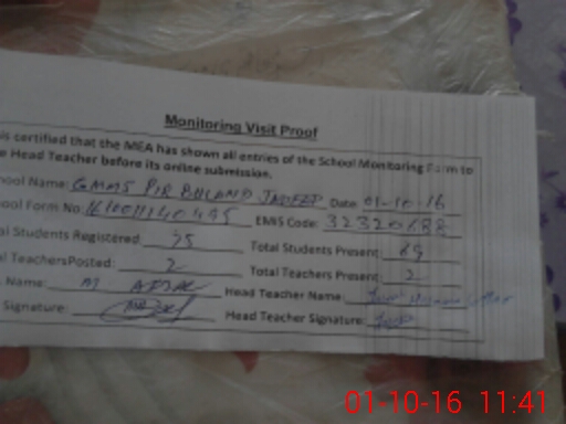 | EMIS Code: 32320688 | Name of School: GPS PIR BULAND JADEED | |||
