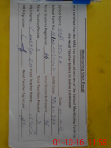 | Certified that this School was Inspected by the Undersigned MEA/DMO Today and the Information Stated Above is as Per Record. | |||||