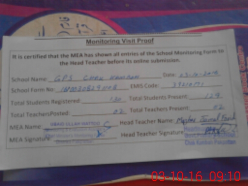 | EMIS Code: 39210171 | Name of School: GPS CHAK KAMBOH PO PAKPATTAN | |||