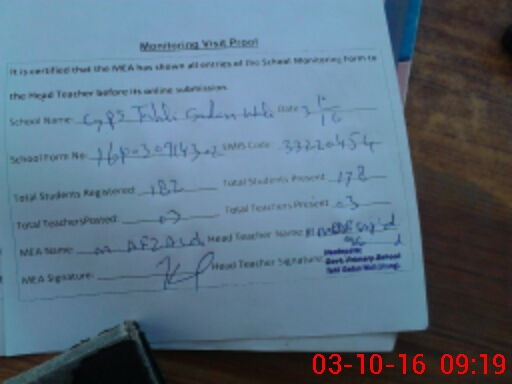 | Attendance Register | Head Teacher | MEA with School | Visit Proof |