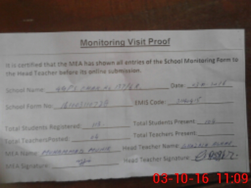 | Certified that this School was Inspected by the Undersigned MEA/DMO Today and the Information Stated Above is as Per Record. | |||||