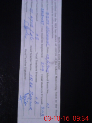 | Attendance Register | Head Teacher | MEA with School | Visit Proof |