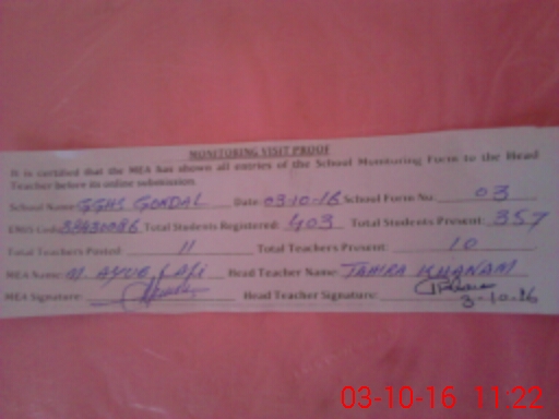| EMIS Code: 38430086 | Name of School: GGHS GONDAL | |||