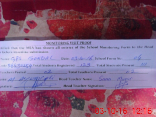 | EMIS Code: 38430254 | Name of School: GPS GONDAL | |||