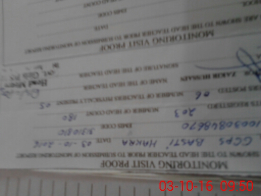 | Monitoring Date: 03-10-2016 | Start Time: 03-10-2016 08:48 AM | End Time: 03-10-2016 09:58 AM | Name of MEA: Za**** Hu**** | |