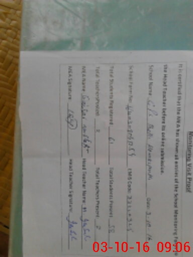 | Attendance Register | Head Teacher | MEA with School | Visit Proof |