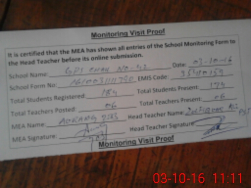 | EMIS Code: 35410159 | Name of School: GES CHAK NO 42 | |||