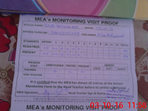 | Certified that this School was Inspected by the Undersigned MEA/DMO Today and the Information Stated Above is as Per Record. | |||||