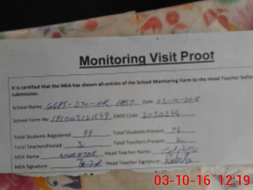 | Certified that this School was Inspected by the Undersigned MEA/DMO Today and the Information Stated Above is as Per Record. | |||||