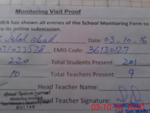 | Attendance Register | Head Teacher | MEA with School | Visit Proof |