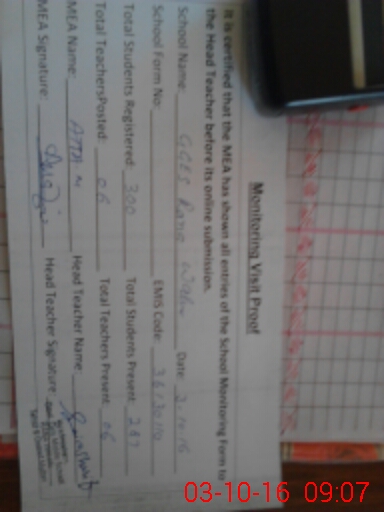 | Certified that this School was Inspected by the Undersigned MEA/DMO Today and the Information Stated Above is as Per Record. | |||||