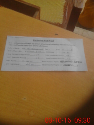 | Certified that this School was Inspected by the Undersigned MEA/DMO Today and the Information Stated Above is as Per Record. | |||||