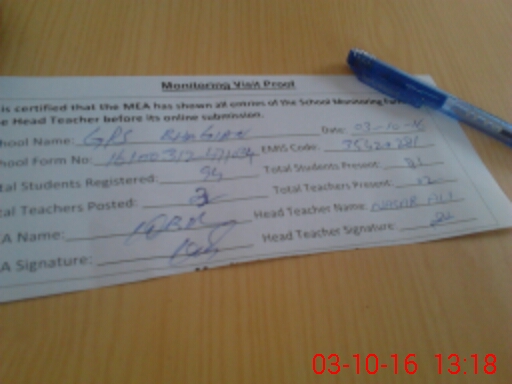 | Attendance Register | Head Teacher | MEA with School | Visit Proof |