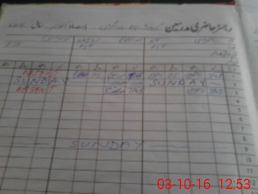 | CNIC | Full Name | Designation | R/C | Absence During Last Calender Month |