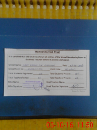 | Certified that this School was Inspected by the Undersigned MEA/DMO Today and the Information Stated Above is as Per Record. | |||||