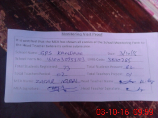 | EMIS Code: 38110285 | Name of School: GPS KANDANI | |||