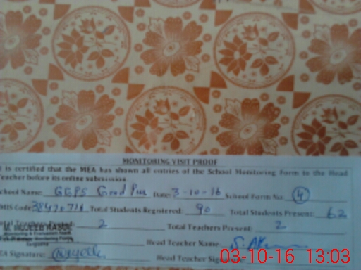 | Attendance Register | Head Teacher | MEA with School | Visit Proof |