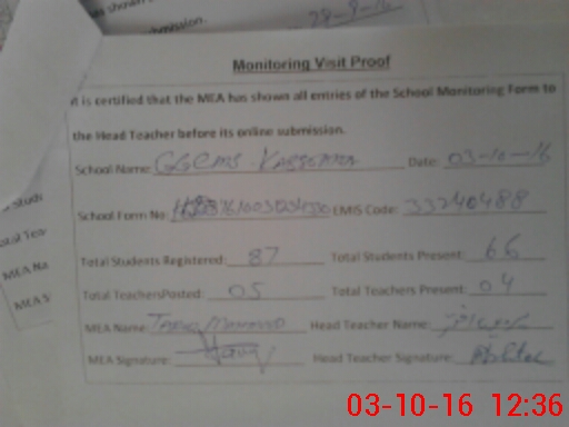 | Certified that this School was Inspected by the Undersigned MEA/DMO Today and the Information Stated Above is as Per Record. | |||||