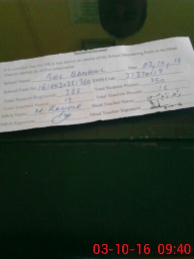 | EMIS Code: 37370019 | Name of School: GHS BANHAL | |||