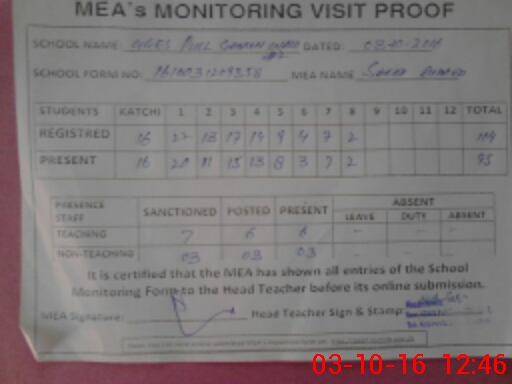 | Certified that this School was Inspected by the Undersigned MEA/DMO Today and the Information Stated Above is as Per Record. | |||||