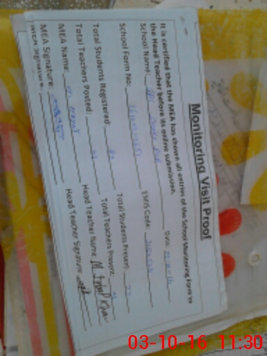 | Certified that this School was Inspected by the Undersigned MEA/DMO Today and the Information Stated Above is as Per Record. | |||||