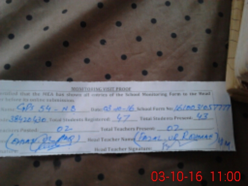 | Attendance Register | Head Teacher | MEA with School | Visit Proof |