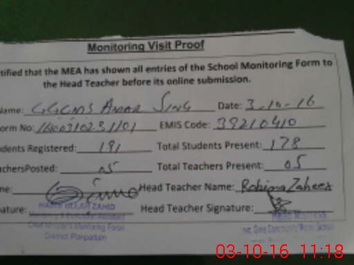 | Certified that this School was Inspected by the Undersigned MEA/DMO Today and the Information Stated Above is as Per Record. | |||||