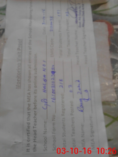 | EMIS Code: 31310098 | Name of School: GPS MC HALQA NO 1 | |||