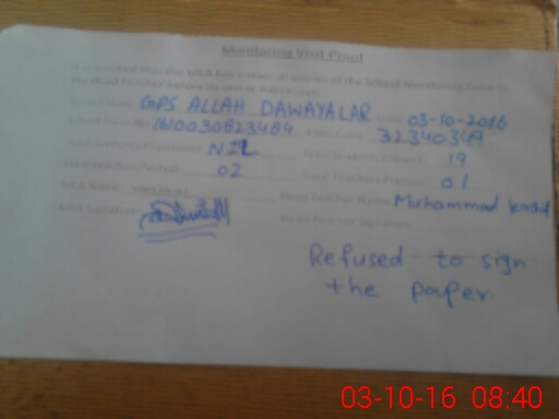 | Certified that this School was Inspected by the Undersigned MEA/DMO Today and the Information Stated Above is as Per Record. | |||||