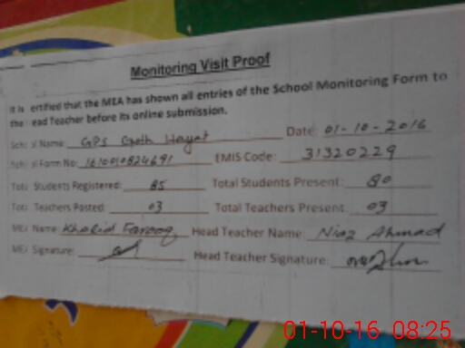| EMIS Code: 31320229 | Name of School: GPS GOTH HAYAT | |||