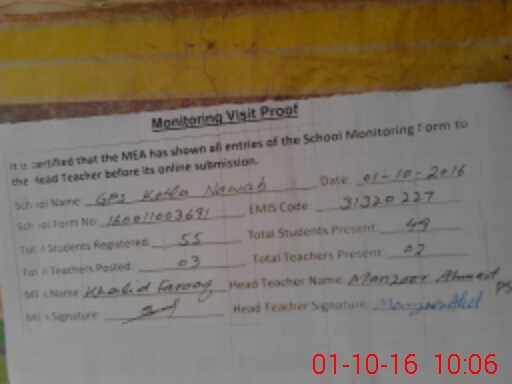 | EMIS Code: 31320227 | Name of School: GPS KOTLA NAWAB | |||