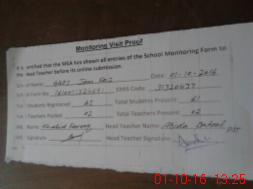 | Attendance Register | Head Teacher | MEA with School | Visit Proof |