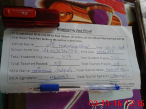 | Certified that this School was Inspected by the Undersigned MEA/DMO Today and the Information Stated Above is as Per Record. | |||||