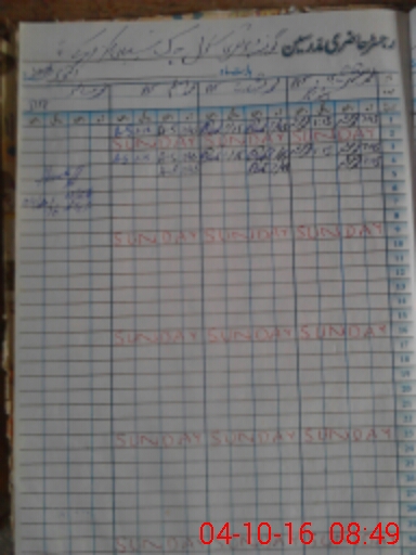 | CNIC | Full Name | Designation | R/C | Absence During Last Calender Month |