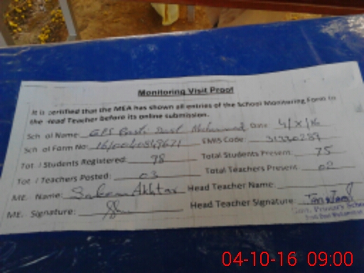 | EMIS Code: 31330289 | Name of School: GPS BASTI DOST MUHAMMAD | |||