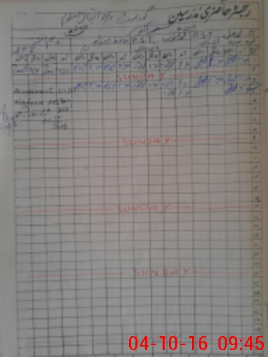| CNIC | Full Name | Designation | R/C | Absence During Last Calender Month |