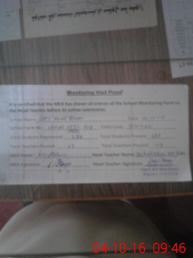 | Certified that this School was Inspected by the Undersigned MEA/DMO Today and the Information Stated Above is as Per Record. | |||||
