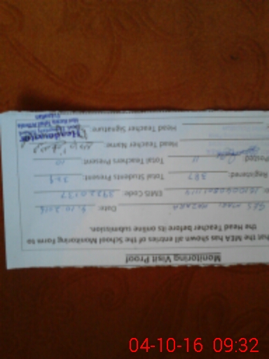 | Attendance Register | Head Teacher | MEA with School | Visit Proof |