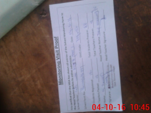 | Attendance Register | Head Teacher | MEA with School | Visit Proof |