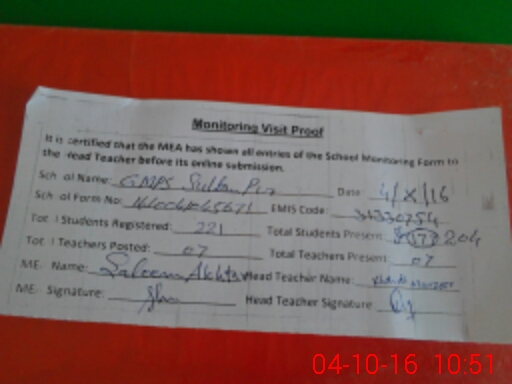 | EMIS Code: 31330754 | Name of School: GMPS SULTAN PUR | |||