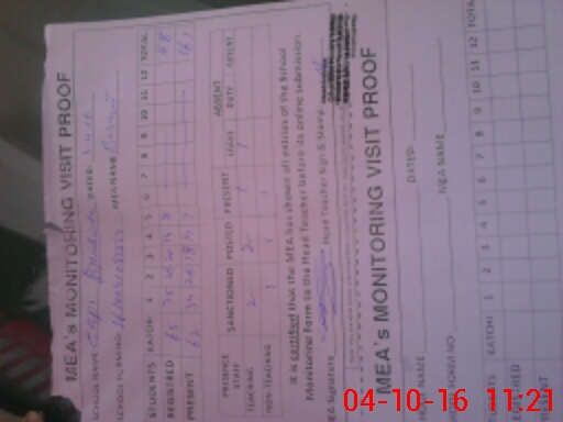 | Monitoring Date: 04-10-2016 | Start Time: 04-10-2016 10:43 AM | End Time: 04-10-2016 11:25 AM | Name of MEA: Z.**** Ba**** Al**** | |