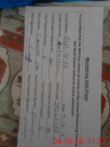 | Certified that this School was Inspected by the Undersigned MEA/DMO Today and the Information Stated Above is as Per Record. | |||||
