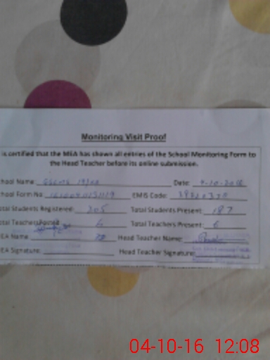 | Certified that this School was Inspected by the Undersigned MEA/DMO Today and the Information Stated Above is as Per Record. | |||||
