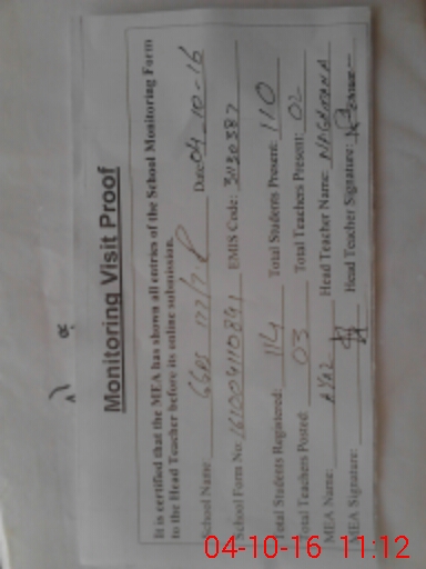 | Certified that this School was Inspected by the Undersigned MEA/DMO Today and the Information Stated Above is as Per Record. | |||||